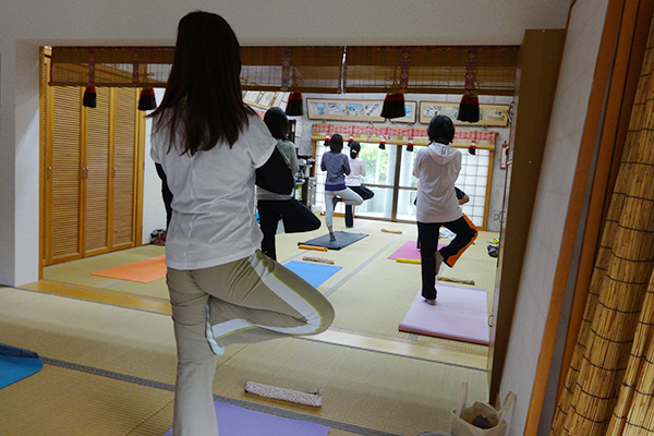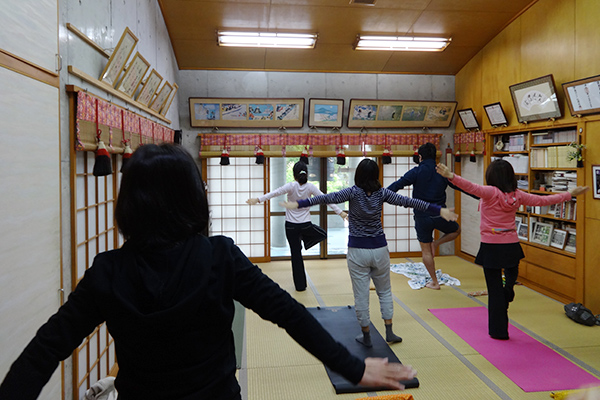 楽邦寺では、健康を維持したい方々のために毎週ヨガ教室を開催しています。お気軽にご参加ください。